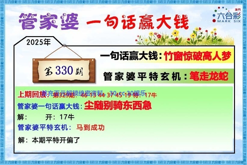 333期:管家婆一句话:【更新中】 解:更新中 综合:更新中 特码:更新中 |